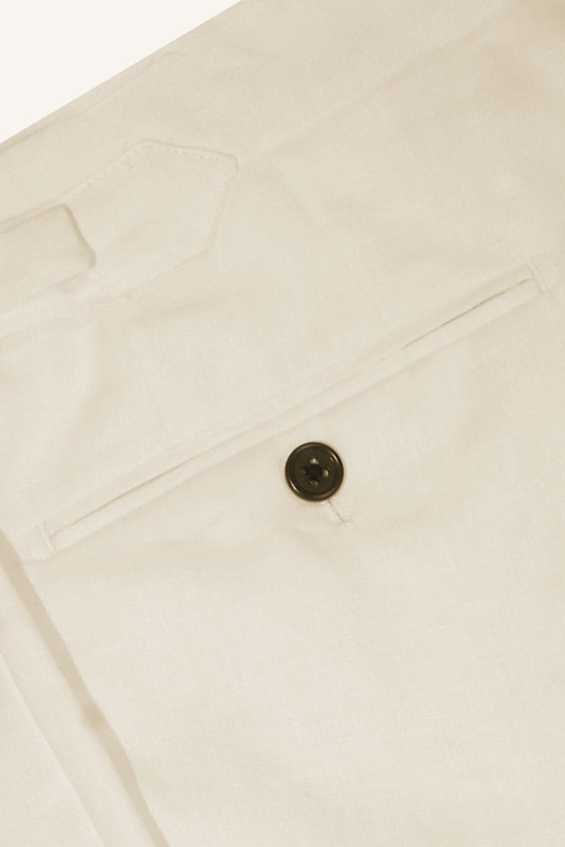 Prepare for relaxed times with these 100% beige cotton chino pants, your next best casual tailoring friend. These versatile chinos will serve you well for weekends, play and whatever else your busy social life can throw at you: pair with a tee for casual vibes or dress them up with loafers and a sports blazer for weddings, parties and casual workplaces. These chino pants are featured here with details like side tabs and dark buttoning. As always, these chinos are made-to-measure and totally customisable—design with your choice of closure, cuffs, pockets, belt loops and more.