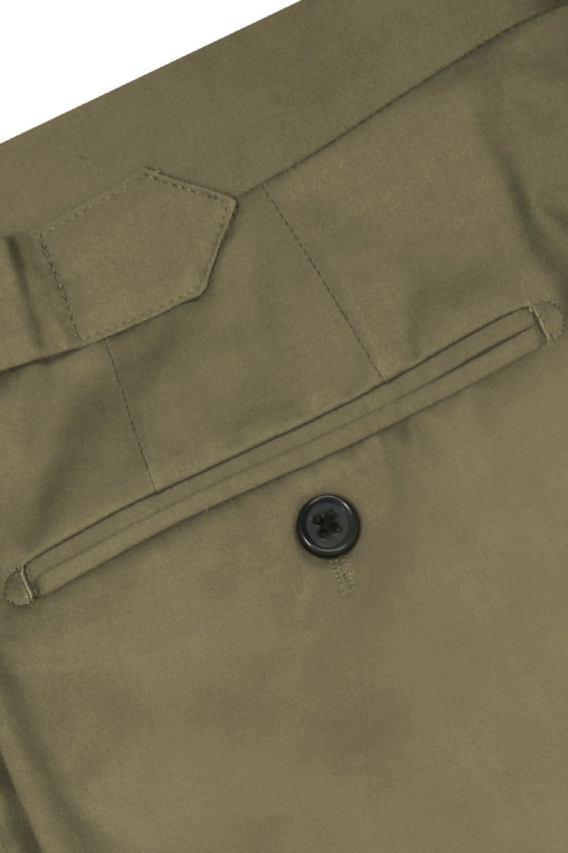 These 100% khaki cotton chinos are versatile, practical and sophisticated, great for work, play and everything in between. Wear with sneakers, boots, loafers or brogues, and pair with a tee, sweater or shirt and blazer; the options are endless. The khaki cotton is a versatile and modern middleground, working nicely with a range of colours and styles. These chino pants are featured here with details like side tabs and dark buttoning. These chinos are made-to-measure and the design is completely customisable—design down to the detail with your choice of closure, cuffs, pockets, side tabs and so much more.